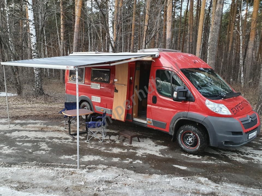 Автодом построен на шасси Ситроен Джампер 2012 года выпуска (Фиат Дукато и Пежо Бокстер), кемпер застрахован по ОСАГО для России. В авто доме предусмотрена функциональная жилая планировка со всей необходимой мебелью и окнами фирмы HUMER.