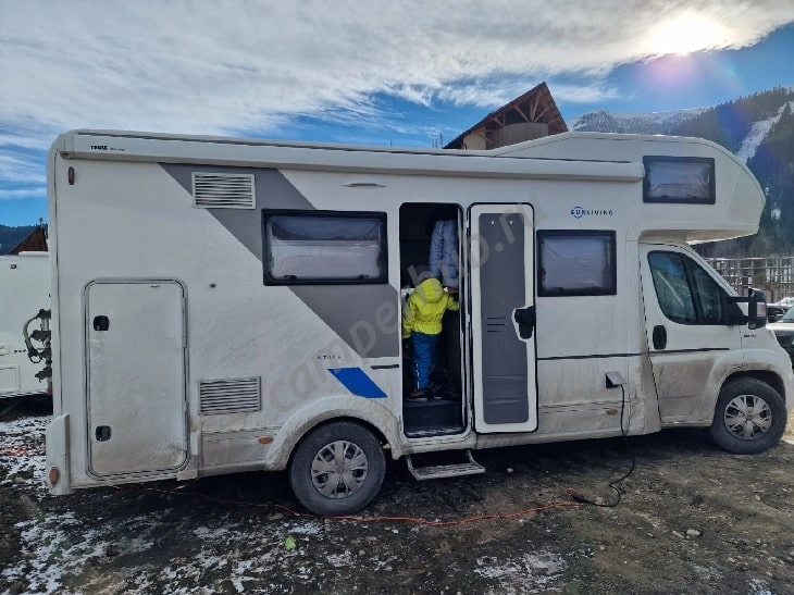 В кабине автодома Фиата также установлен утеплитель на окнах, чтобы предотвратить проникновение холодного воздуха и сохранить тепло внутри кабины.